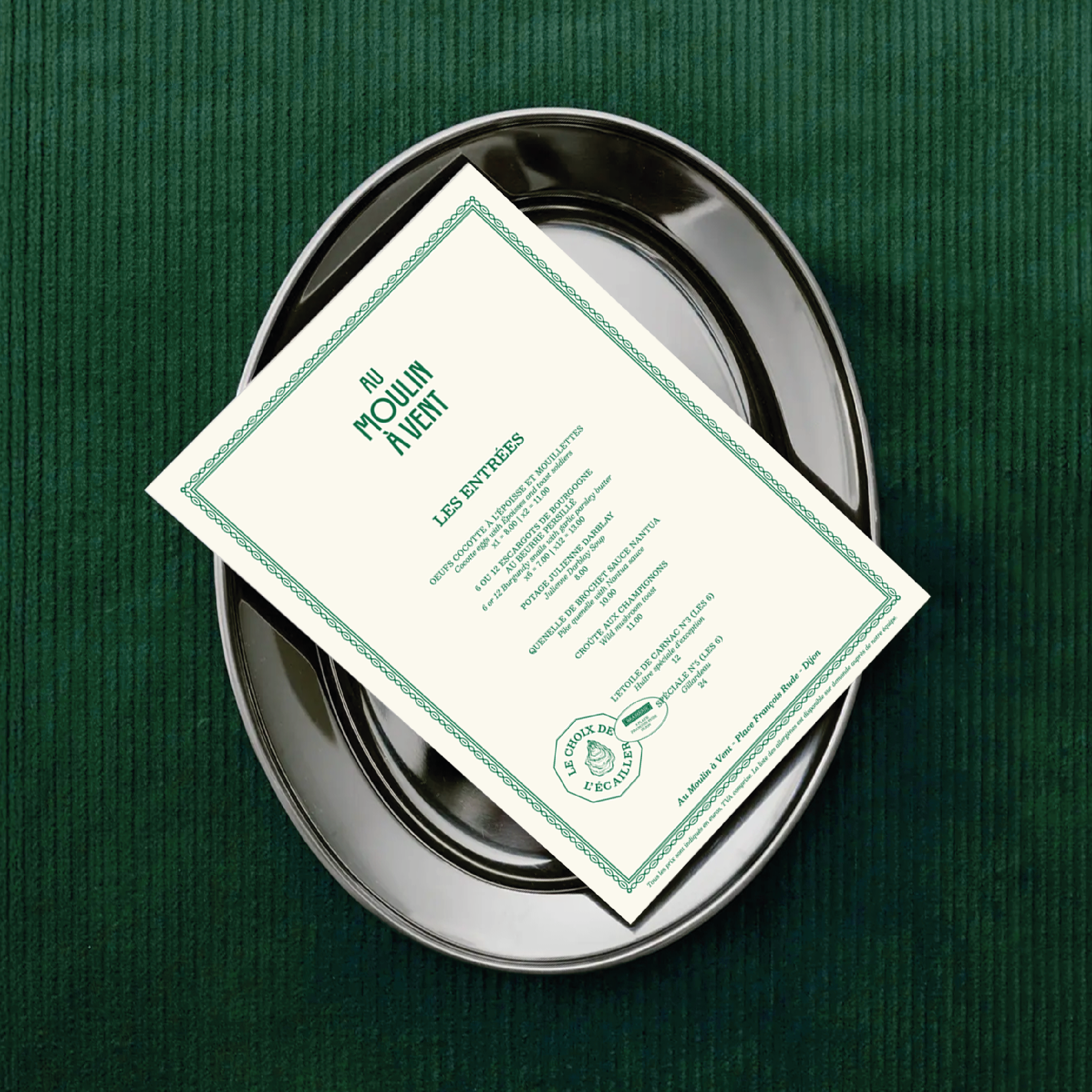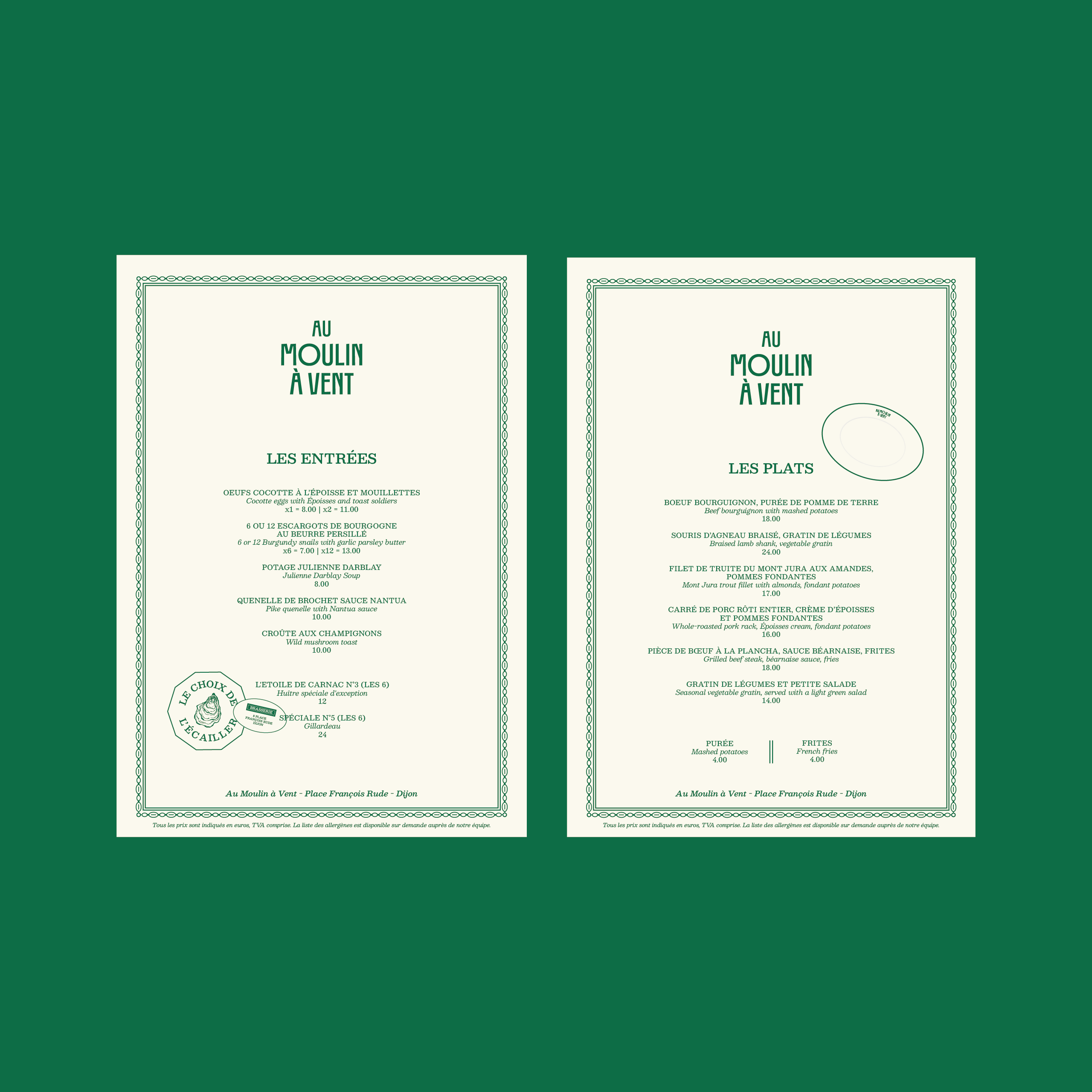 Moulin à Vent Création de l’identité globale du restaurant traditionnel Moulin à Vent à Dijon. Logotype, Illustration, Menu, Vaisselle, Vestiaire, Supports Digitaux, Papeterie et Affichage. Client: Moulin à vent Lieu: Click to Go Date: mars 2, 2026 Category: Branding Share: